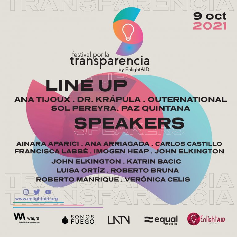 Es por eso que EnlightAID alzará aún más su voz el próximo 9 de octubre a través del Festival por la Transparencia. Para su primera edición, a realizarse de manera virtual, el Festival por la Transparencia abrirá el debate sobre la corrupción en los procesos de donación uniendo a ponentes entre los que se incluyen cineastas, politólogos, activistas, emprendedores y periodistas, además de proyectos musicales que han brillado por su compromiso social.