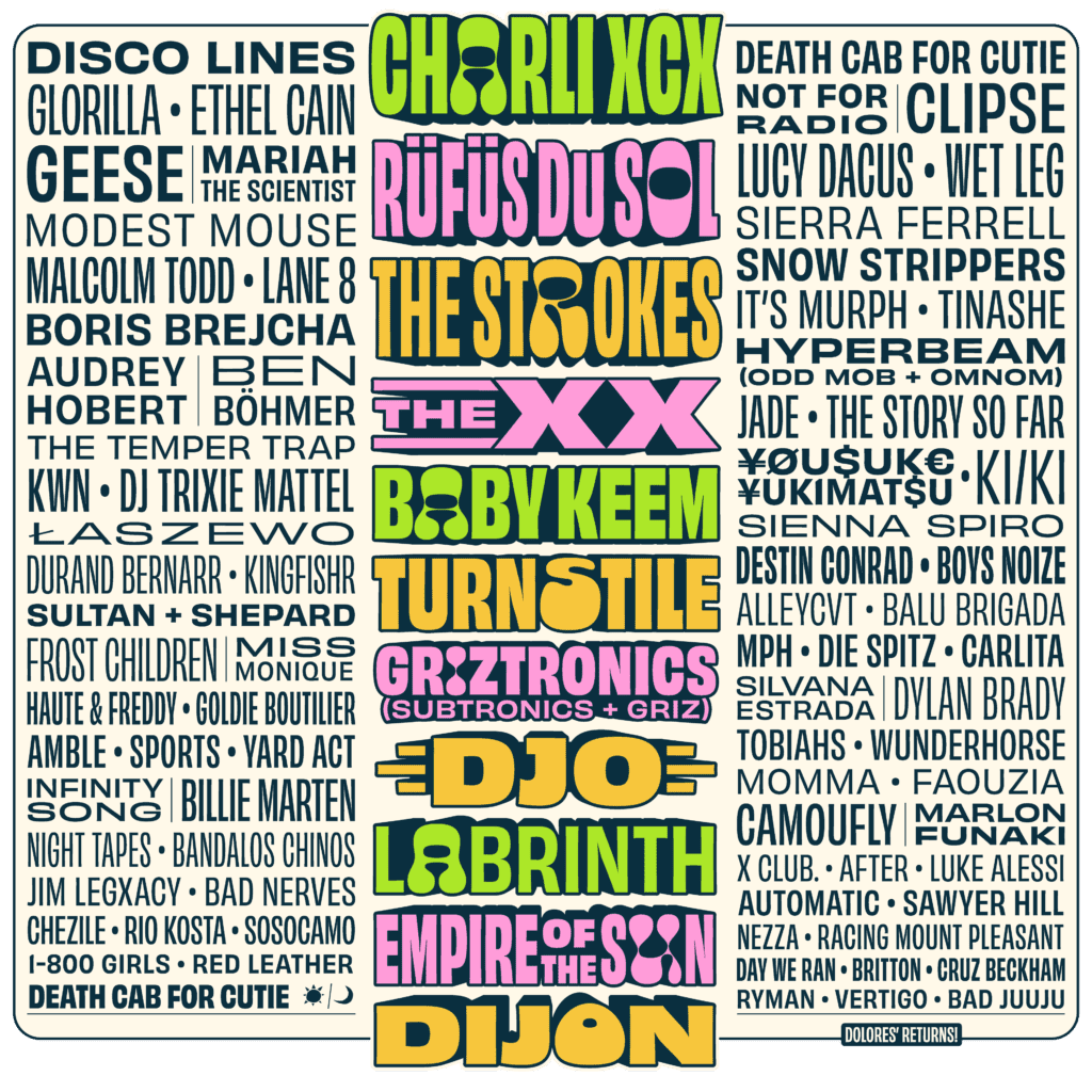 El cartel reúne figuras centrales de la música contemporánea como The Strokes, Charli XCX, RÜFÜS DU SOL, The xx y Baby Keem, nombres que encabezan un fin de semana donde convergen distintas escenas musicales: desde el indie rock hasta la electrónica, pasando por el pop alternativo y el hip hop.
